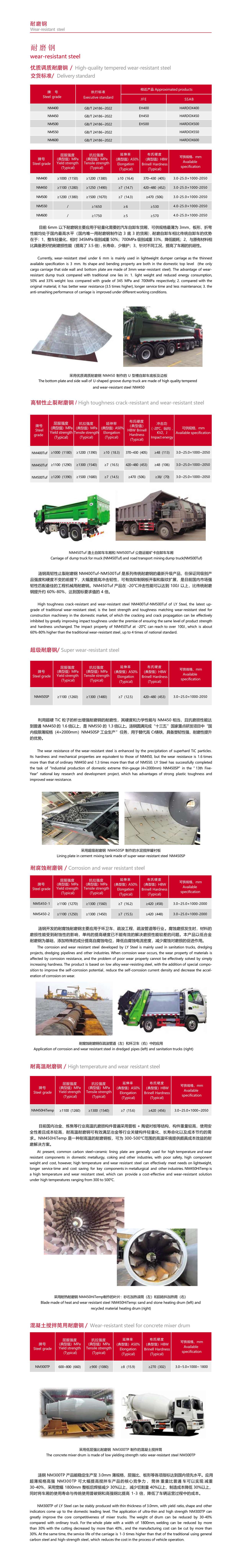 漣鋼高韌性止裂耐磨鋼 NM400Tuf-NM500Tuf 是系列傳統(tǒng)耐磨鋼的最新升級產(chǎn)品,在保證同級別產(chǎn) 品強(qiáng)度和硬度不變的前提下,大幅度提高沖擊韌性,可有效抑制鋼板開裂和裂紋擴(kuò)展,是目前國內(nèi)市場強(qiáng) 韌性匹配最佳的工程機(jī)械用耐磨鋼。NM450Tuf 產(chǎn)品在 -20℃沖擊性能可以達(dá)到 100J 以上,比傳統(tǒng)耐磨 鋼提升約 60%-80%,達(dá)到國標(biāo)要求值的 4 倍。