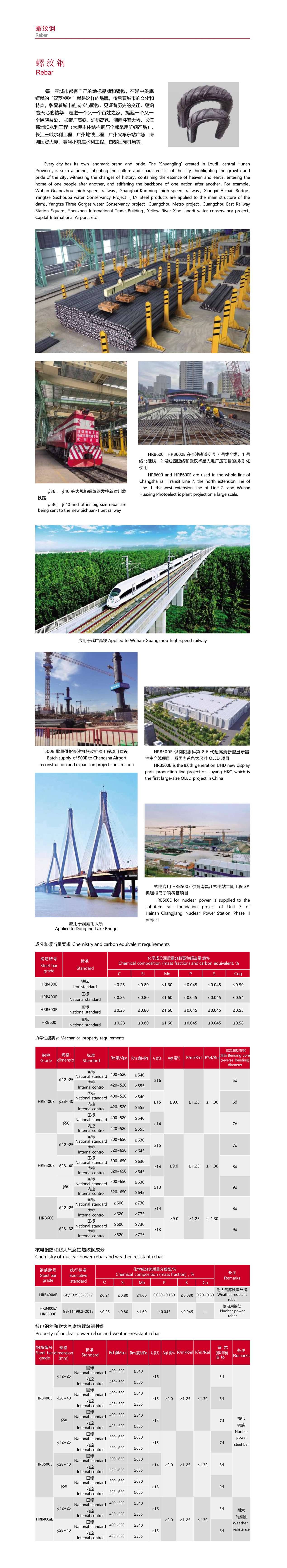 每一座城市都有自己的地標(biāo)品牌和驕傲,在湘中婁底鑄就的“雙菱 ”就是這樣的品牌,傳承著城市的文化和特點,彰顯著城市的成長與驕傲,見證著歷史的變遷,蘊(yùn)涵著天地的精華,走進(jìn)一個又一個百姓之家,挺起一個又一個民族脊梁。如武廣高鐵、滬昆高鐵、湘西矮寨大橋,長江葛洲壩水利工程(大壩主體結(jié)構(gòu)鋼筋全部采用漣鋼產(chǎn)品)、長江三峽水利工程、廣州地鐵工程、廣州火車東站廣場、深圳國貿(mào)大廈、黃河小浪底水利工程、首都國際機(jī)場等。