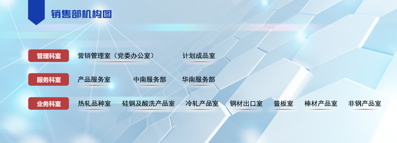 硅鋼及酸洗產(chǎn)品室:負(fù)責(zé)取向硅鋼、HIB鋼、熱軋電工鋼、酸洗電工鋼、熱軋中高碳、冷硬電工鋼、退火電工鋼、冷硬中高碳、退火中高碳、酸洗汽車用鋼的銷售業(yè)務(wù)及技術(shù)營銷工作。0738-8663321